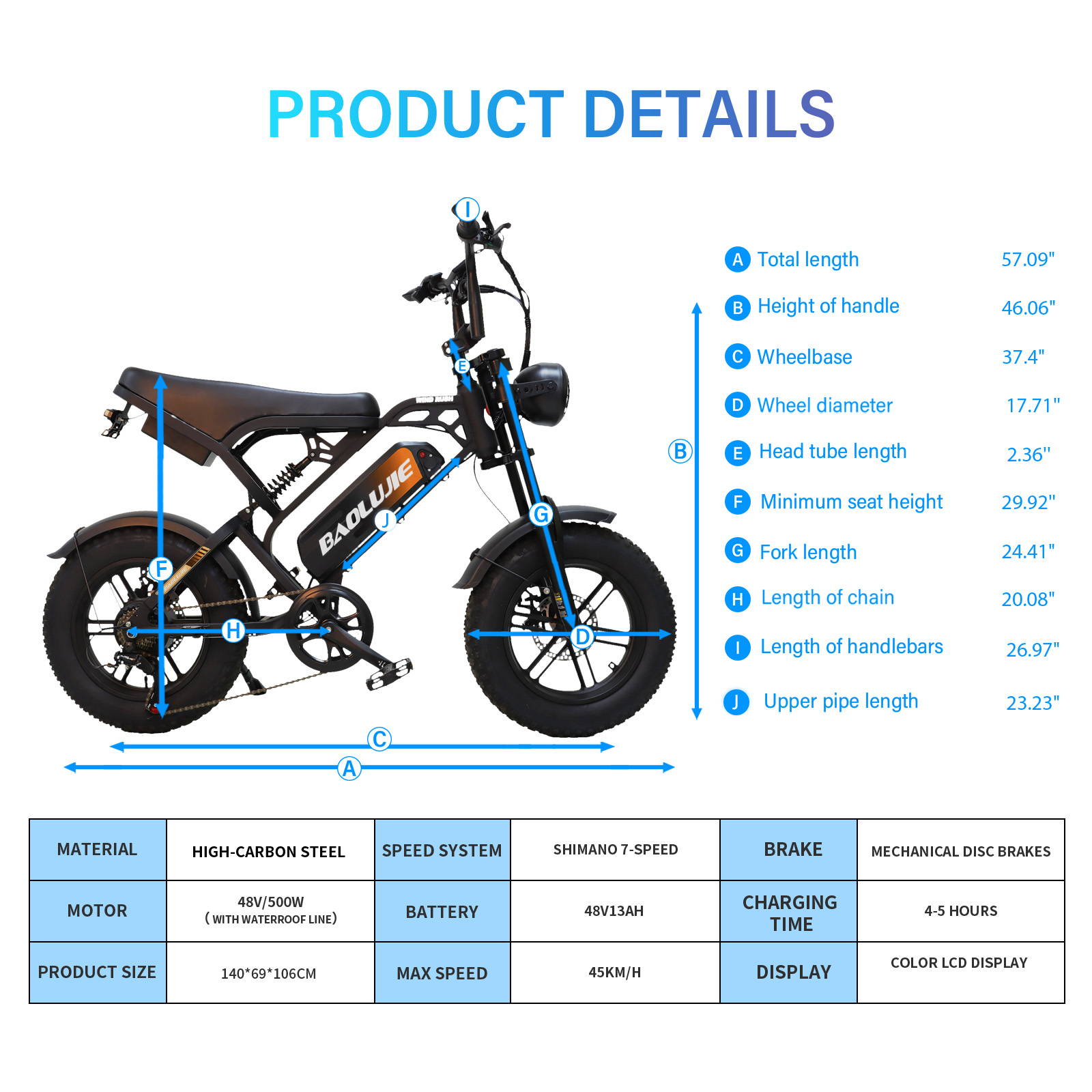 Tire: 16*4.0 inch fat tire